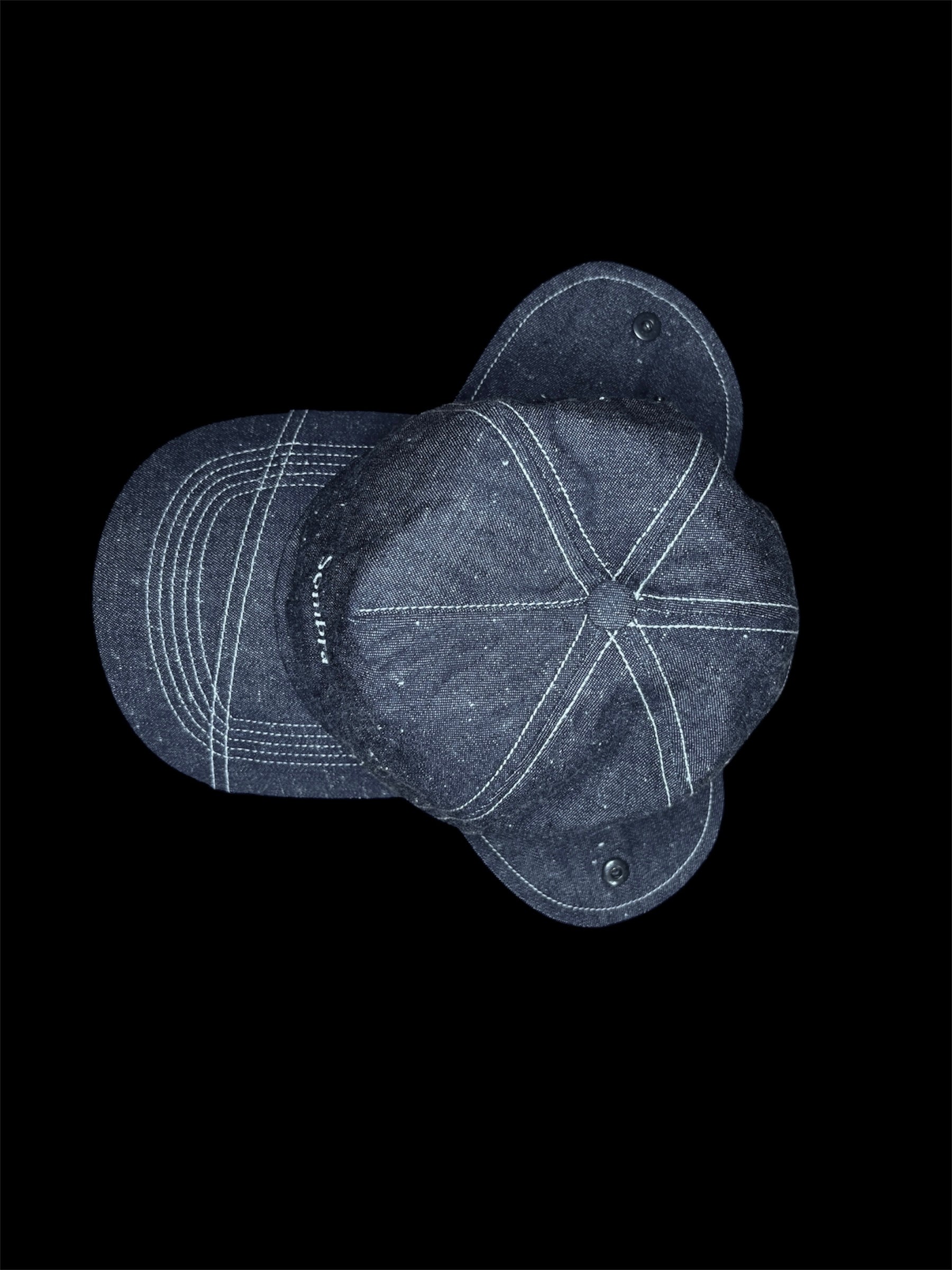 Japanese denim hunter-style cap, handmade in Madrid by gaze alle